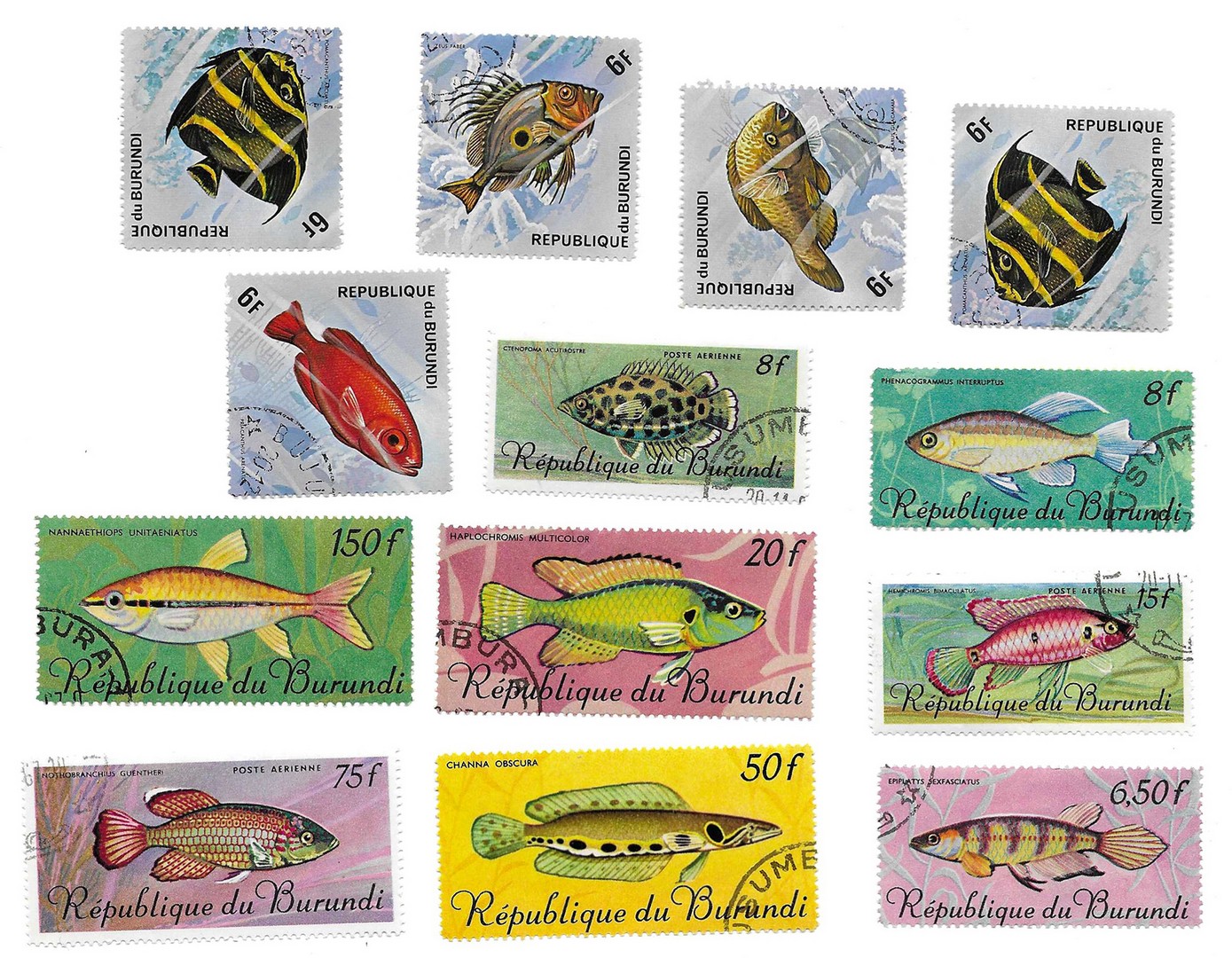 Lote sellos serie "Peces" (1970-71)