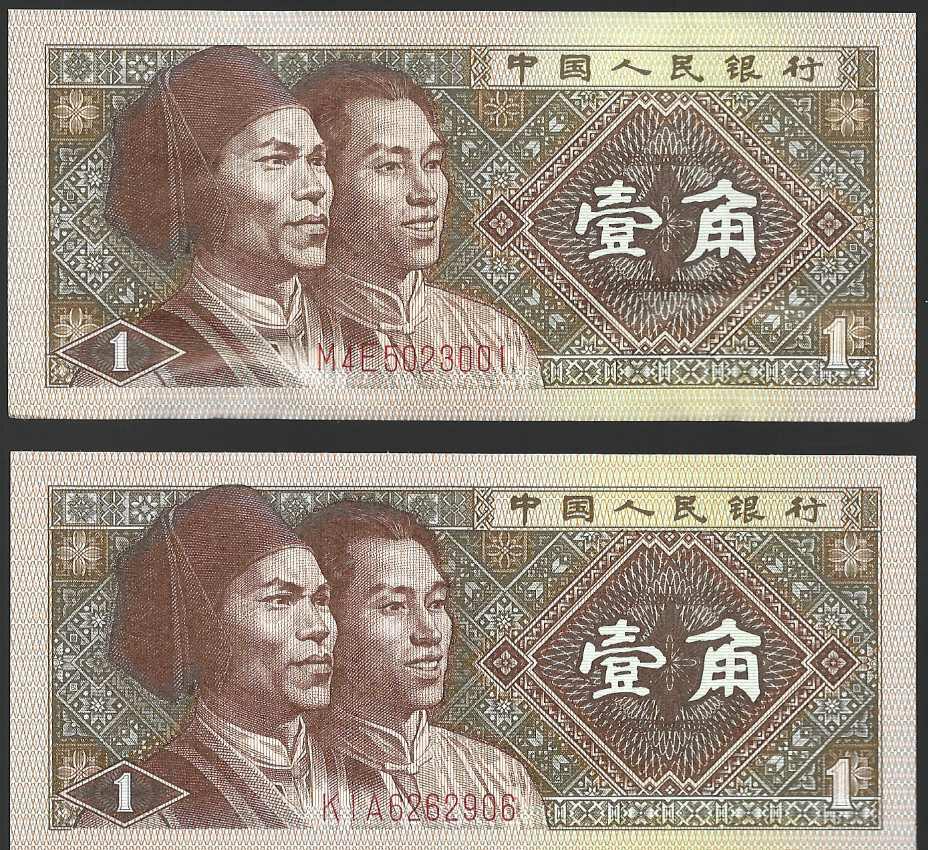 Lote de 2 Billetes de 1 jiao de 1980 (sin circular)