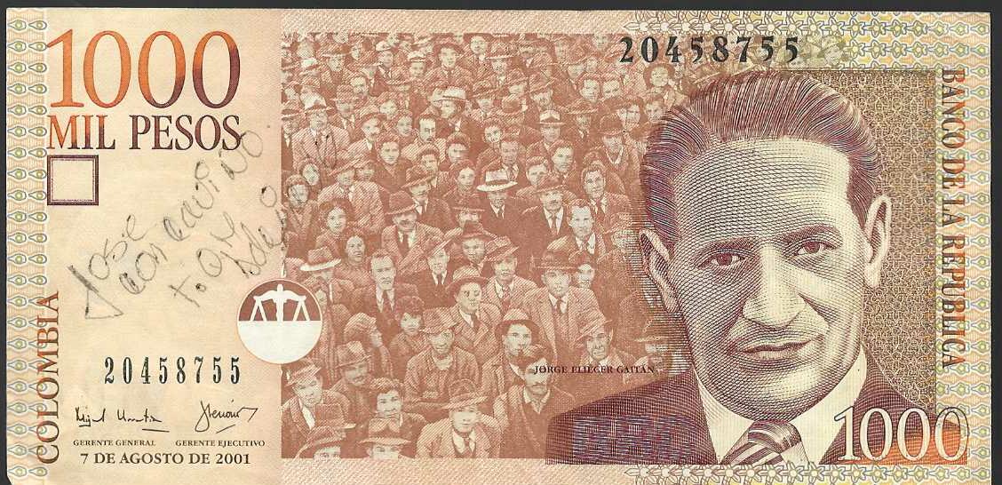 Billete de 1000 pesos de oro del 2001