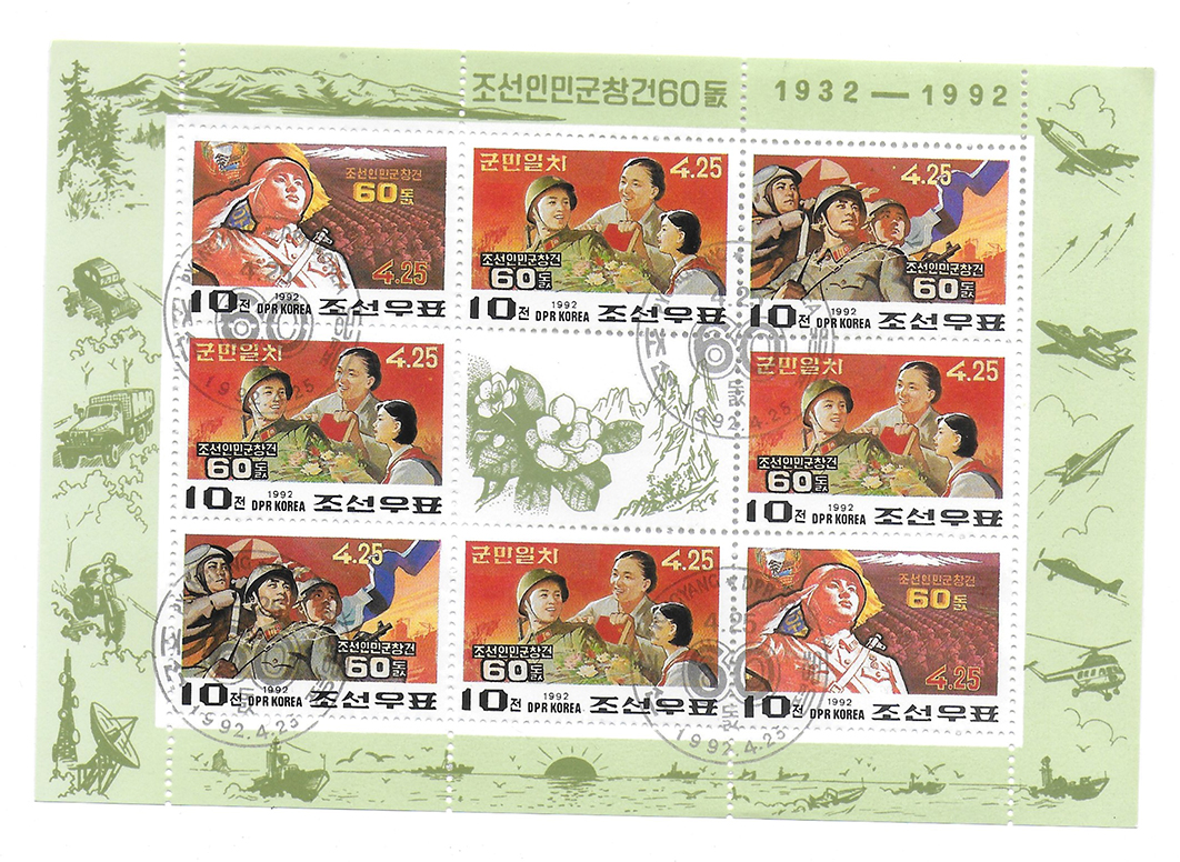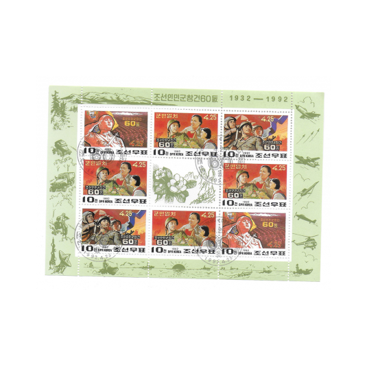 Set de sellos Corea del Norte (1992) - Hoja sellos commemorativos 60 Aniv. Fundacion del Ejercito Popular de Corea (1932-1992)