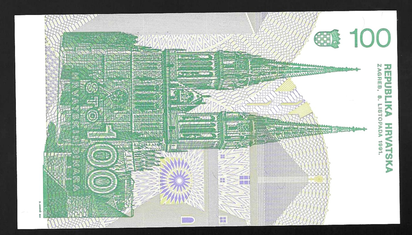 Billete de 100 dinara croatas (sin circular) 1991