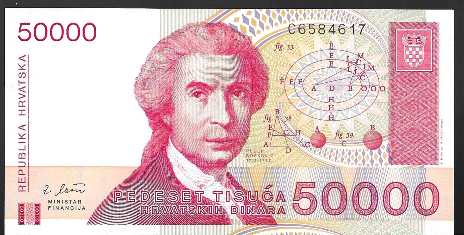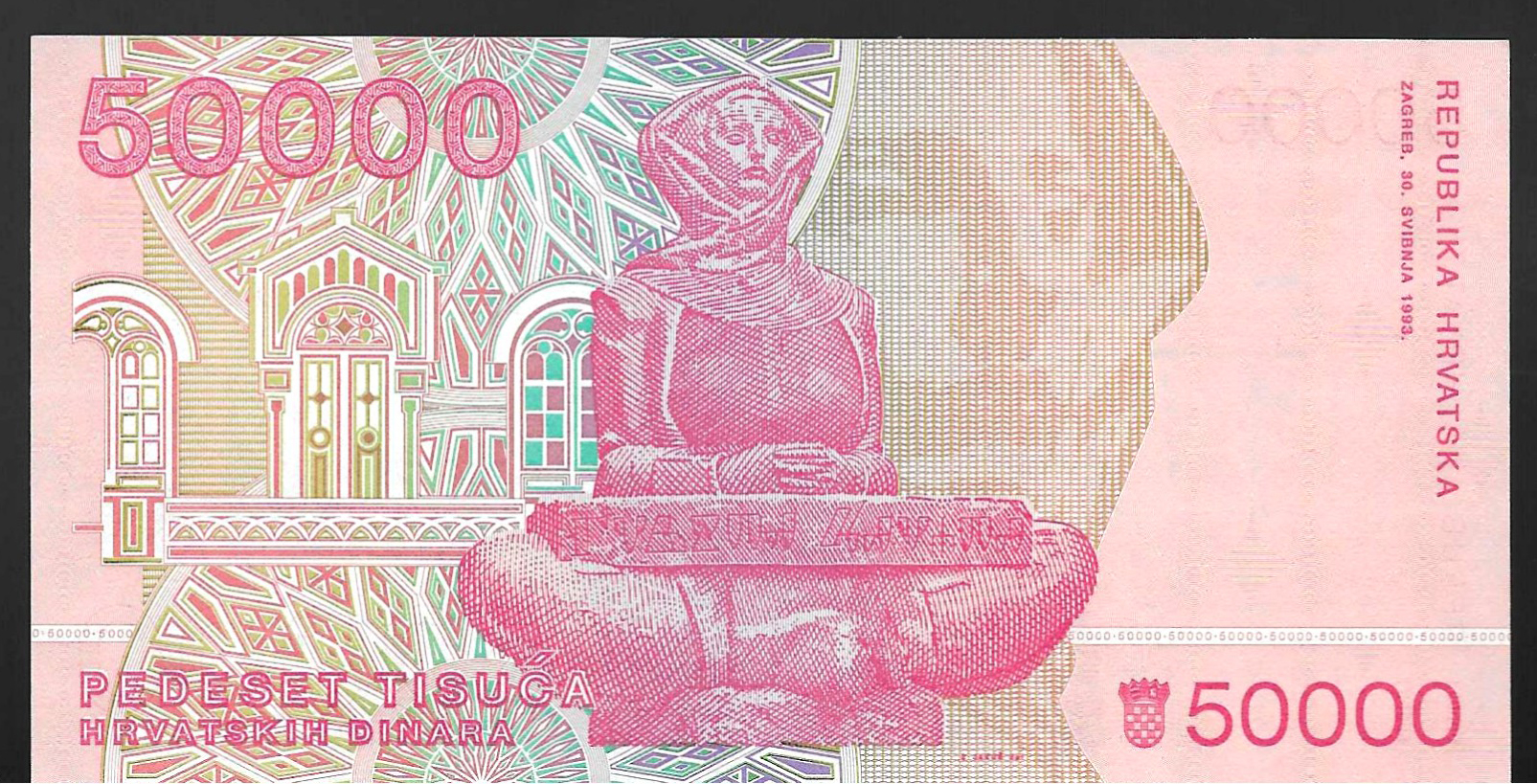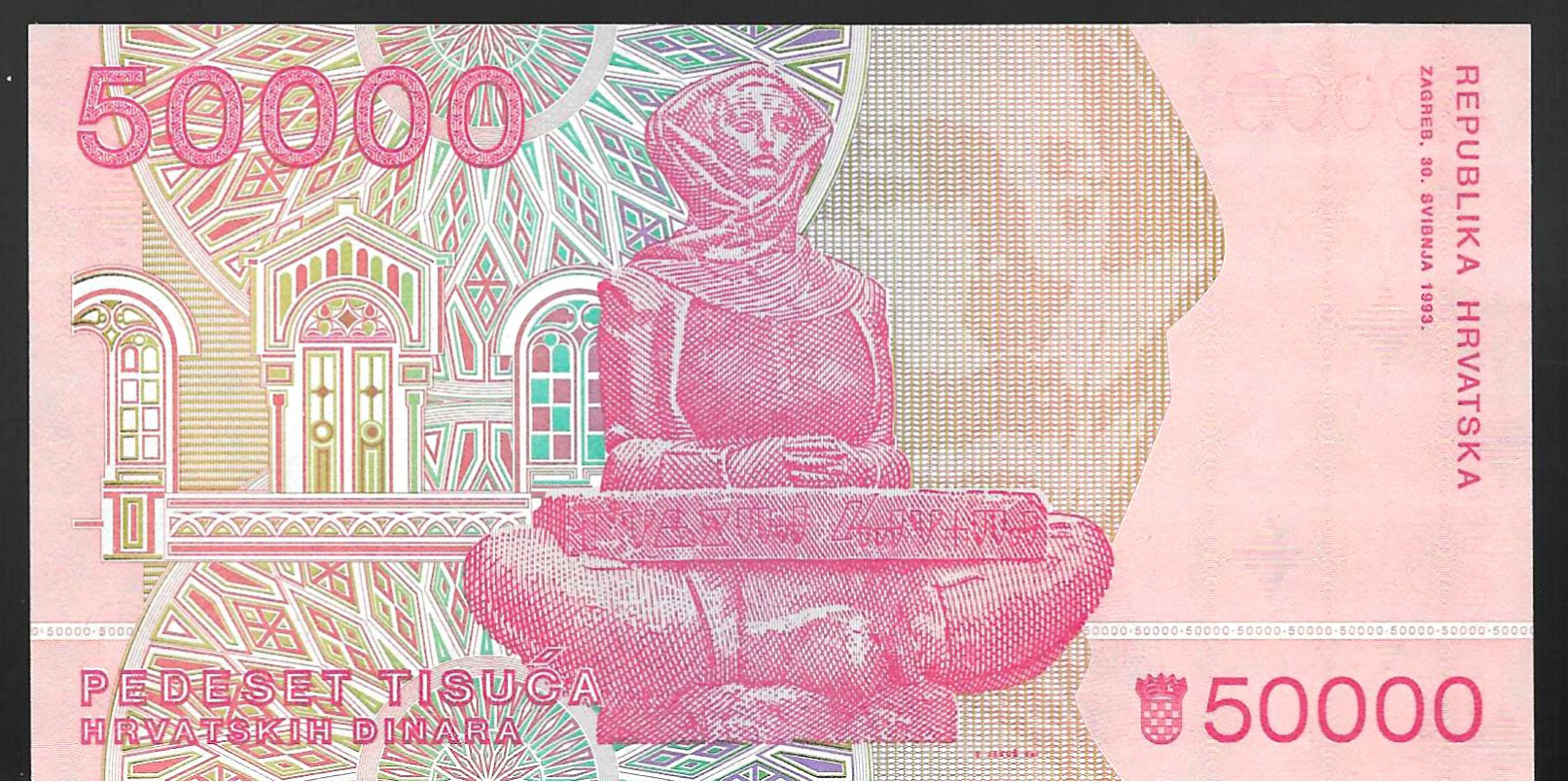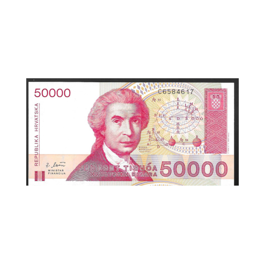 Billete de 50.000 dinares croatas (sin circular) 1993