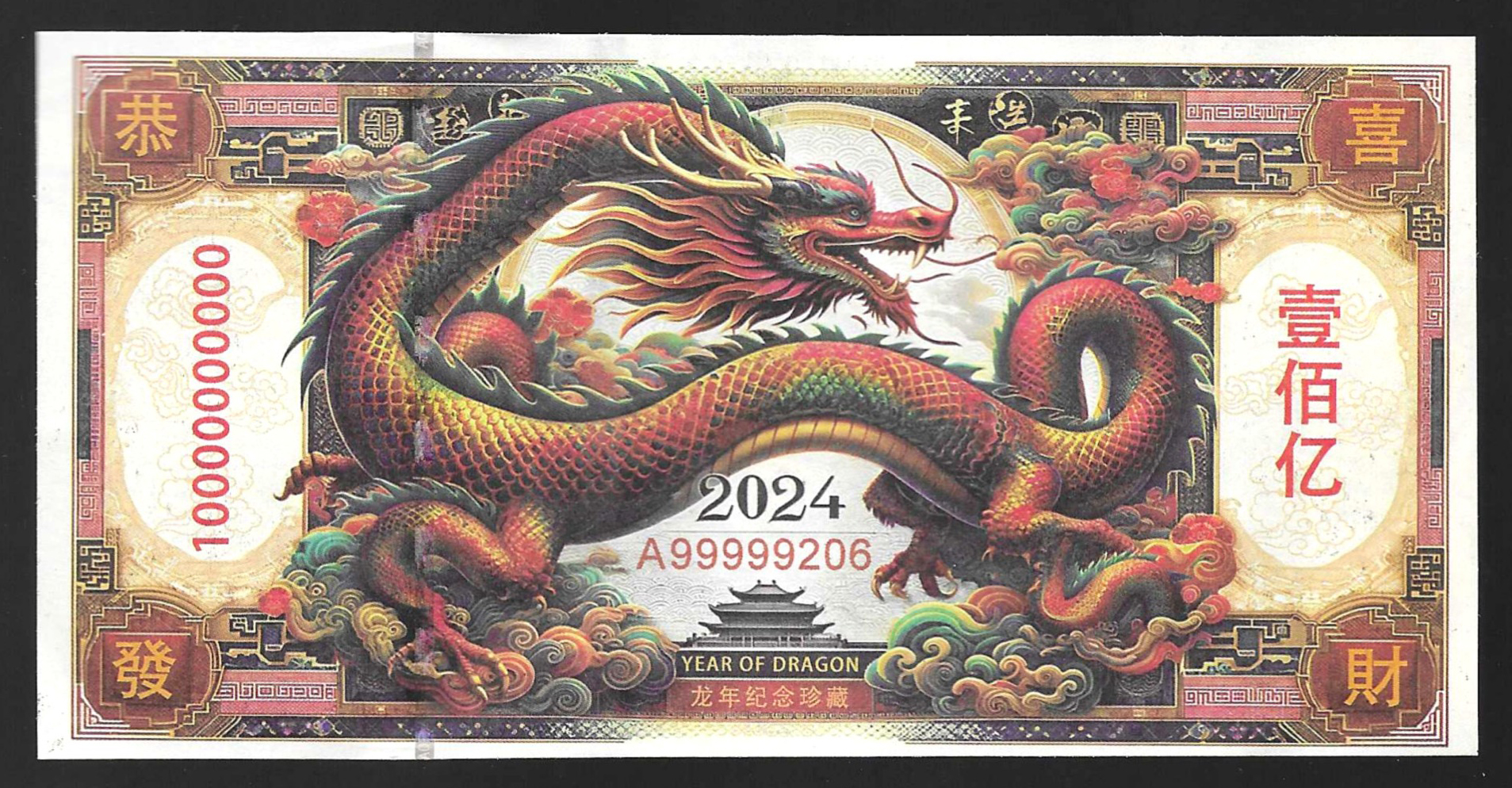 1 billete del Dragón de la fortuna chino