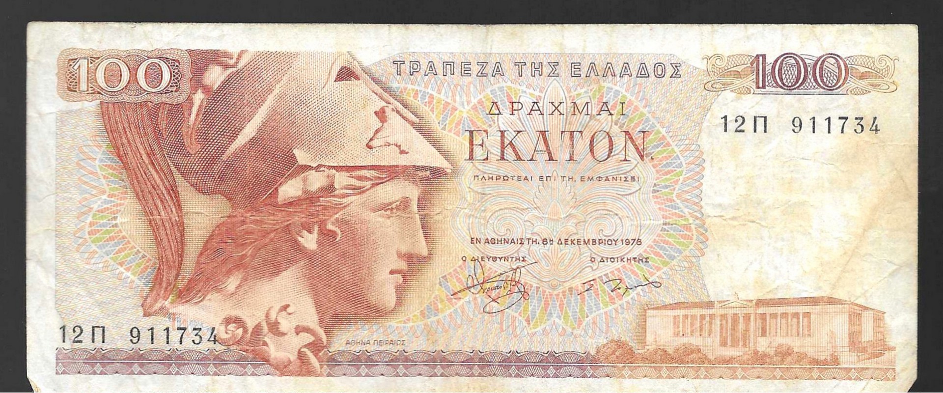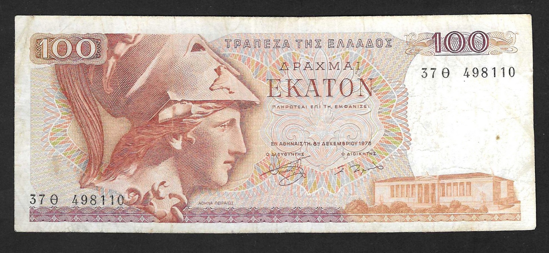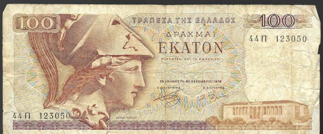 Billete de 100 Dracmas griegos de 1978