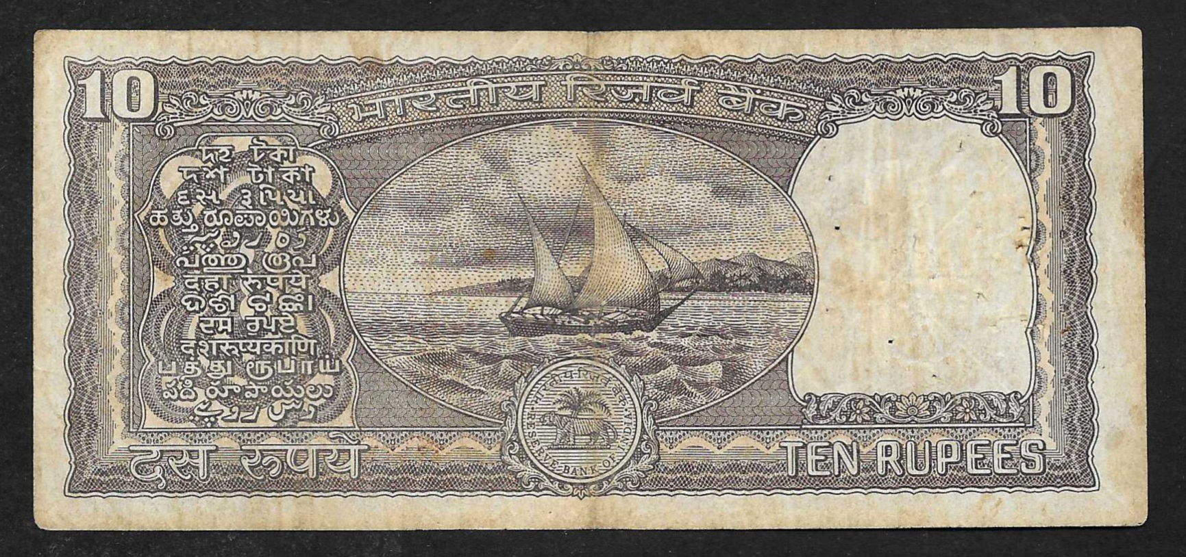 Billete de 10 rupias de La India serie "Dhow" (1990-92)
