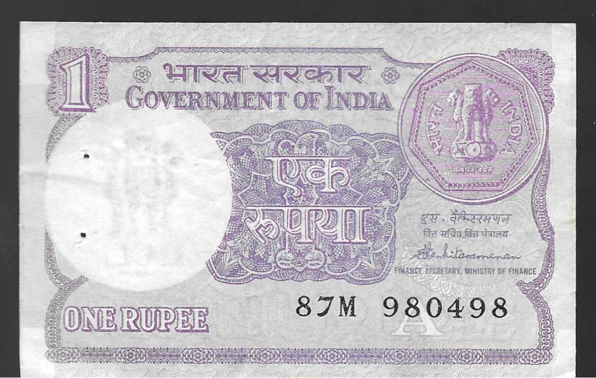 Billete de 1 rupia (1987)