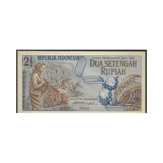 Billete de 2 y 1/2 rupias de 1961 (EBC)
