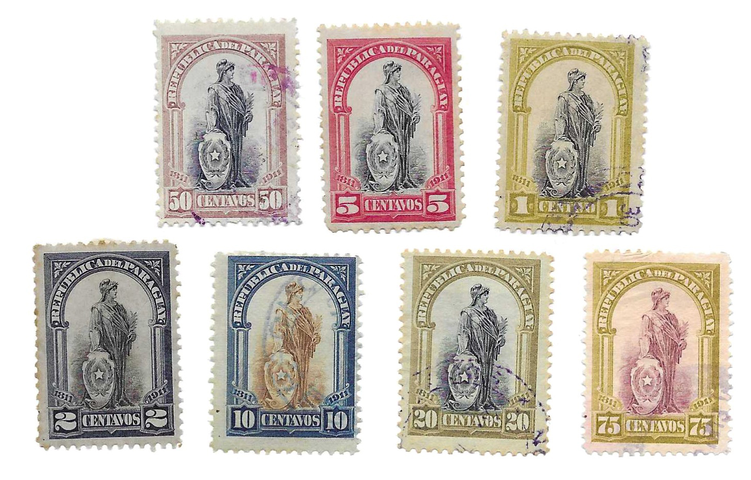 Lote de sellos de 1911 "Commemoracion Centenario Independencia de PAraguay (1811-1911)"