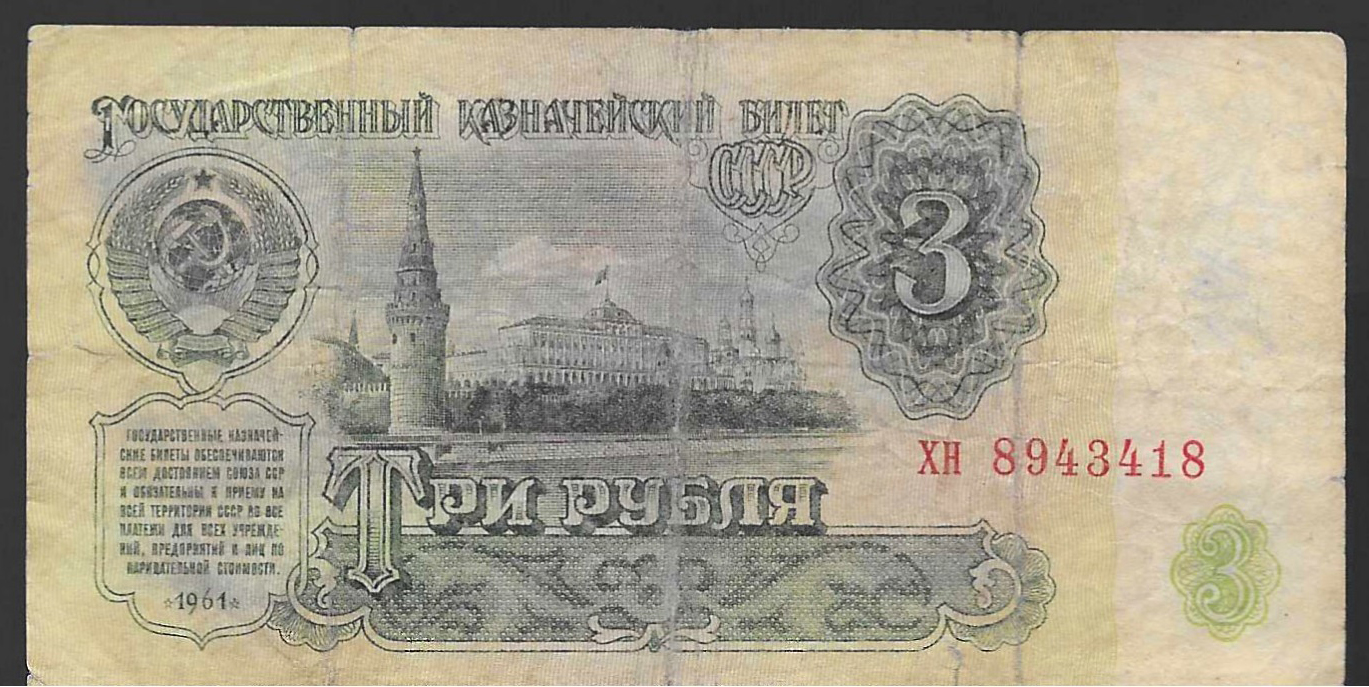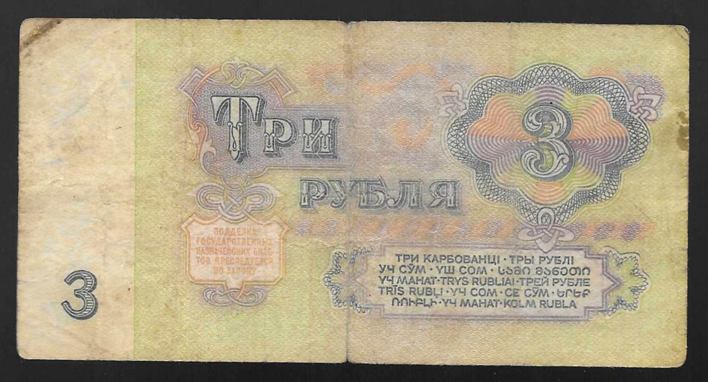 Billete de 3 rublos de 1961