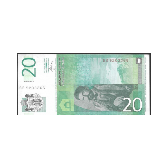 Billete de 20 dinares serbios de 2013 (sin circular)