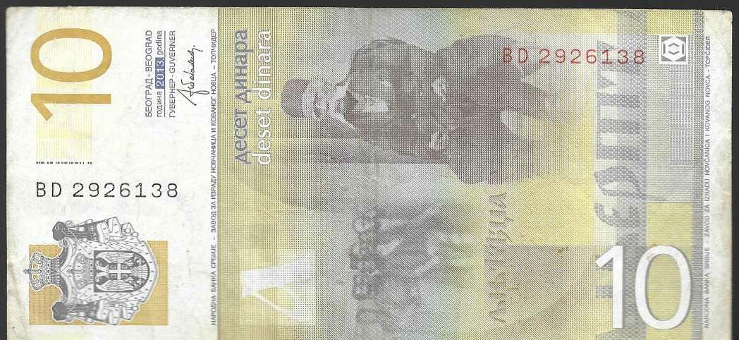 Billete de 10 dinares serbios de 2013
