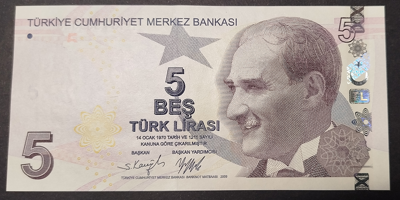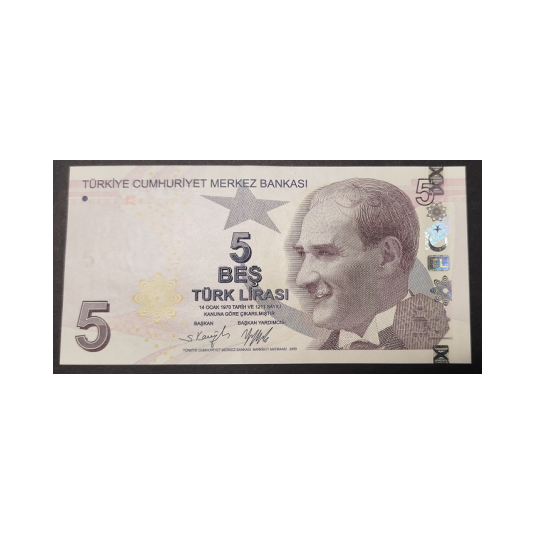 Billete de 5 liras turcas (2009) - sin circular