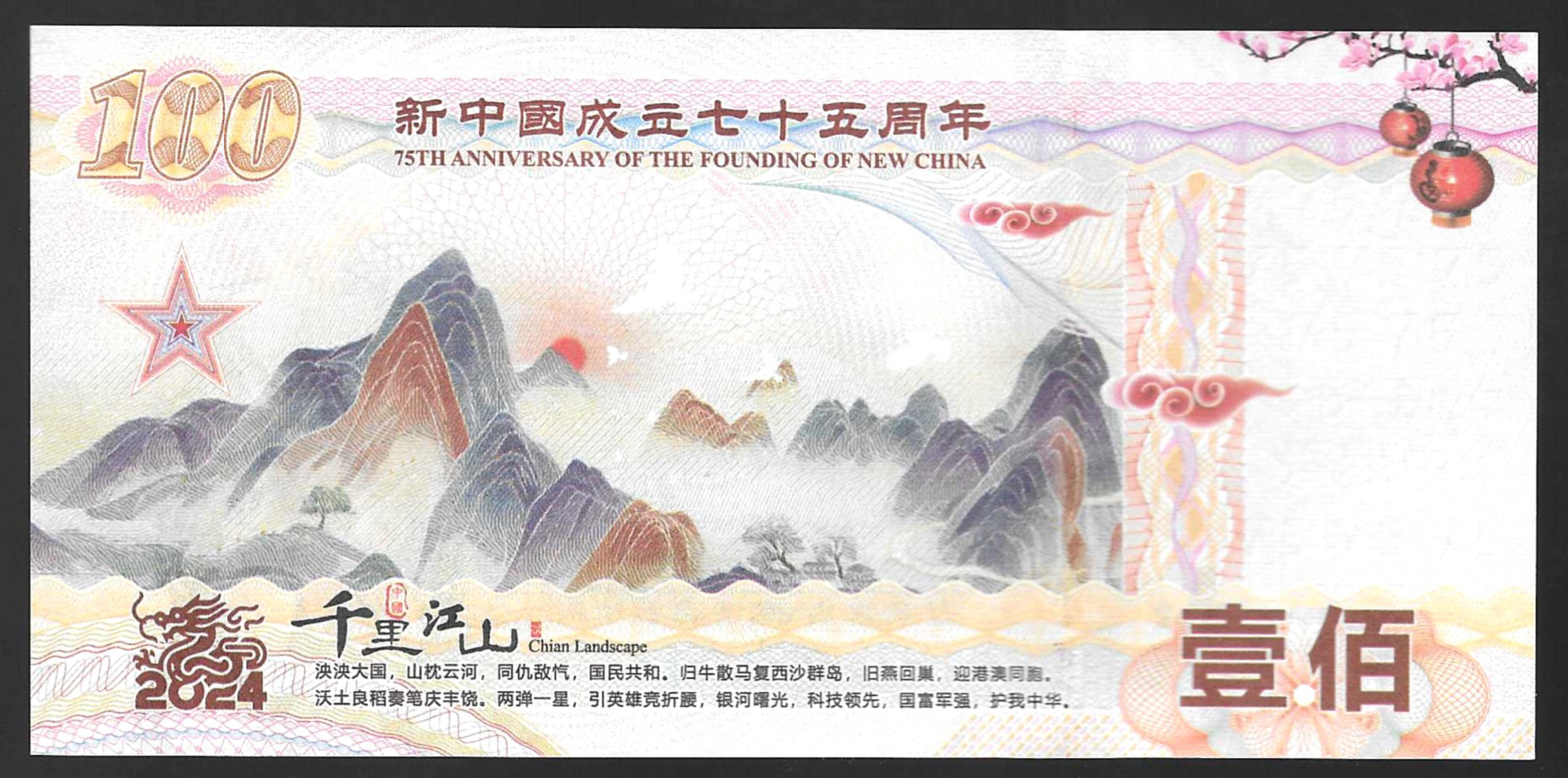 Billete conmemorativo 75 Aniversario fundación de la Nueva China