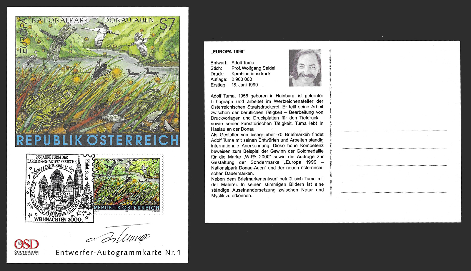 Tarjeta de autografo del diseñador Entwerfer de la imprenta estatal de Austria