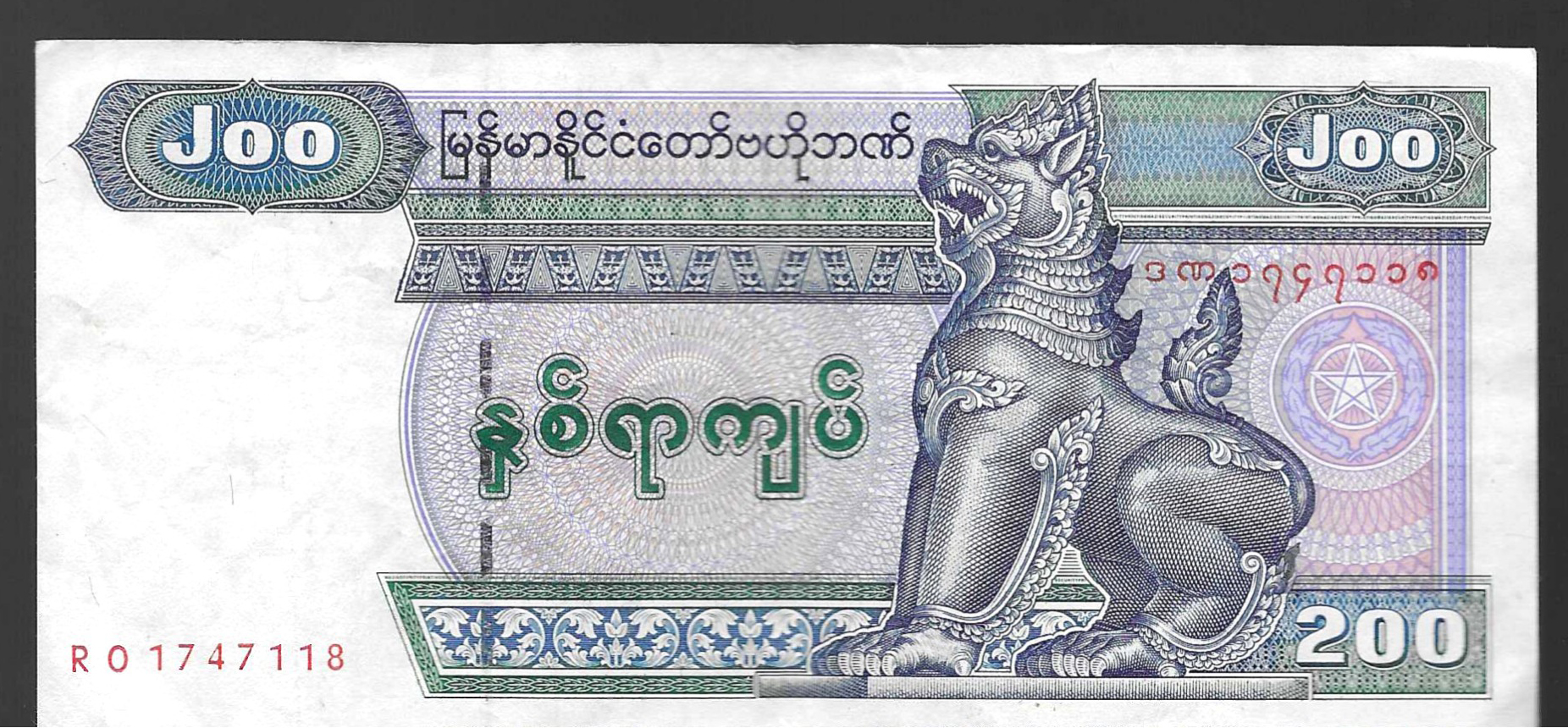 Billete de 200 kyats de 1990