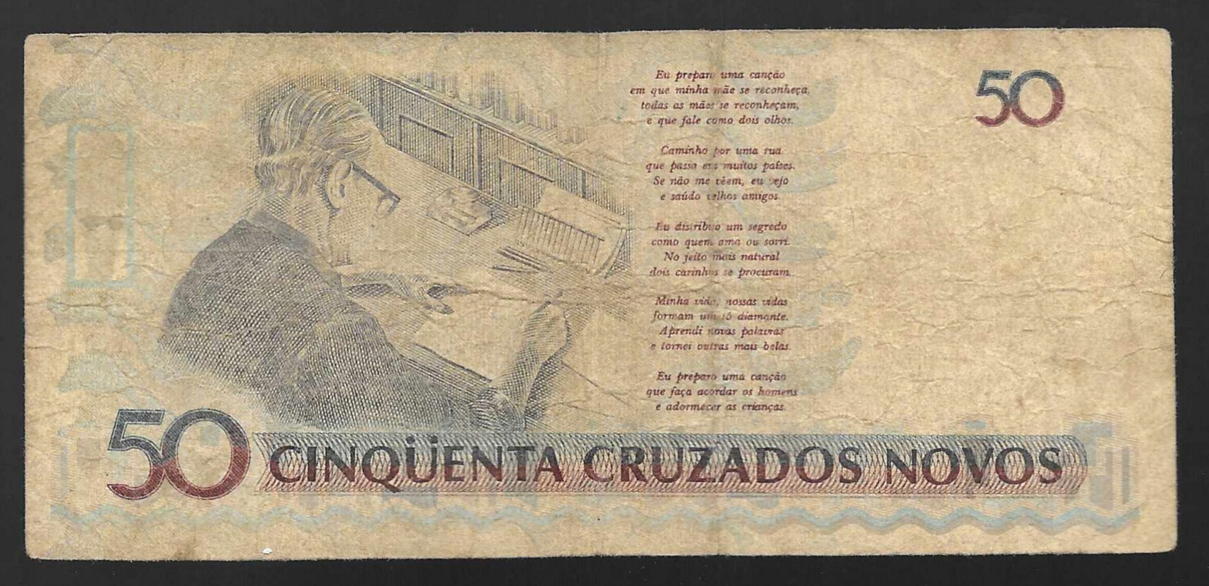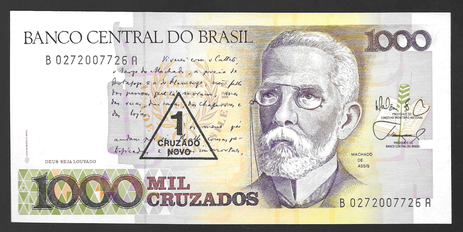 Billete de 1000 cruzados / 1 cruzado novo de 1989