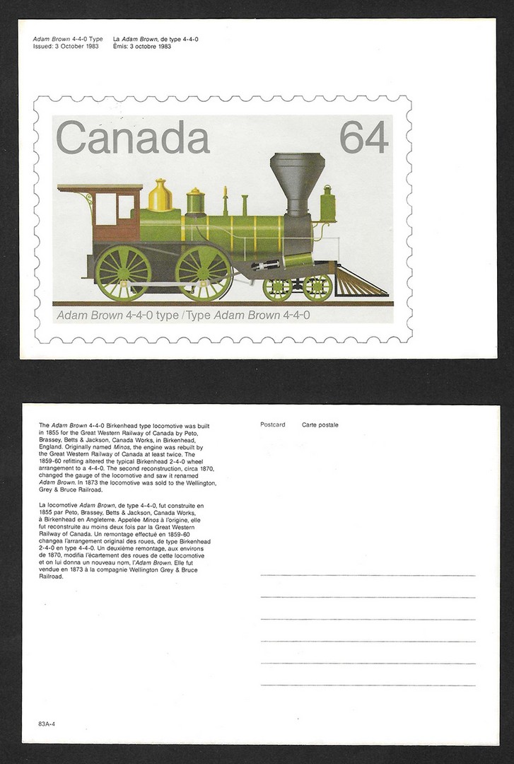 1 postal de 1983 "Commemorativa Locomotoras canadienses (1836-1860)"
