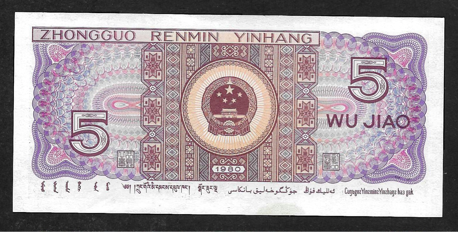 Billete de 5 Jiao de la 4a serie del Renminbi de China de 1980