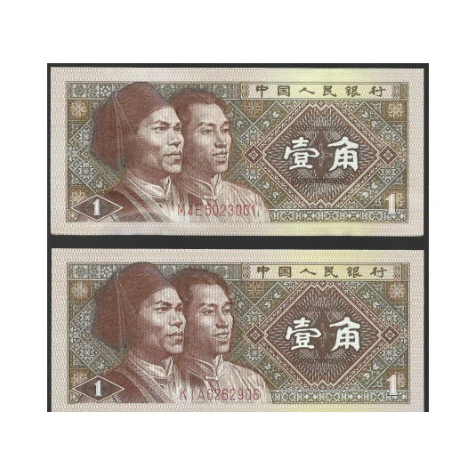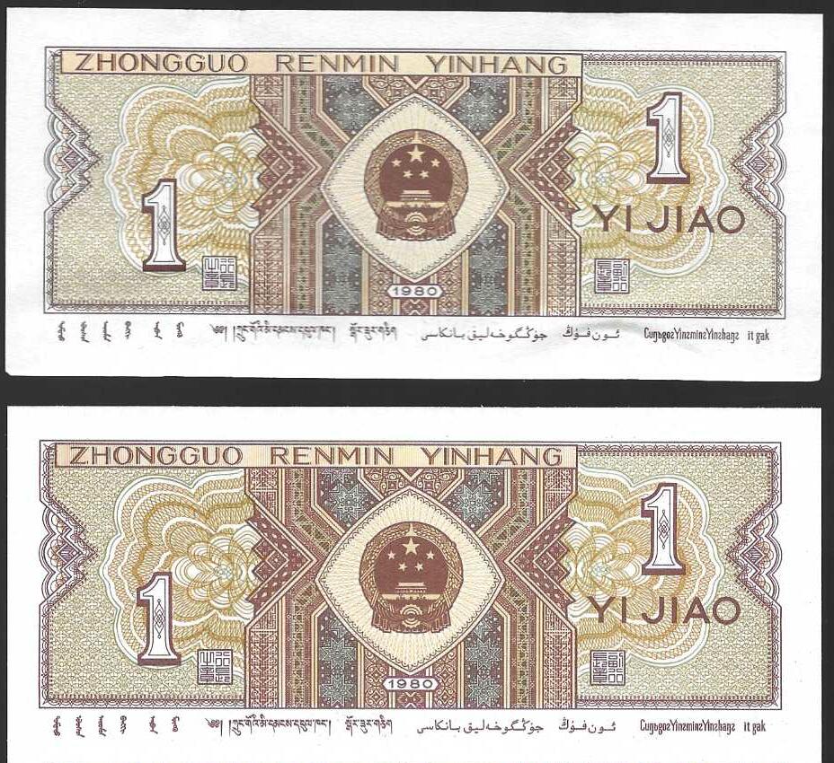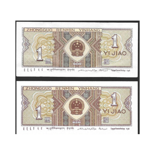 Lote de 2 Billetes de 1 jiao de 1980 (sin circular)