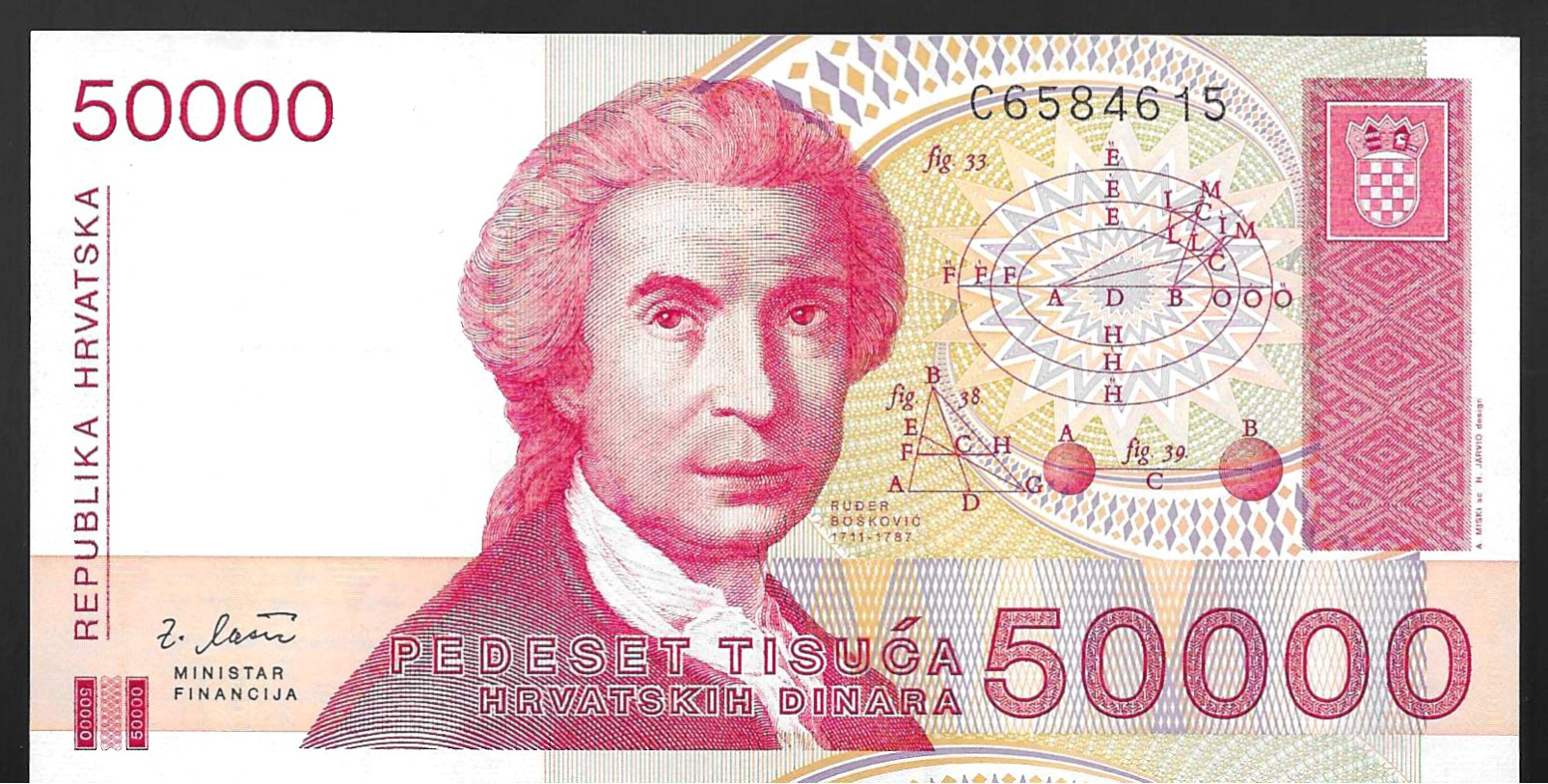 Billete de 50.000 dinares croatas (sin circular) 1993