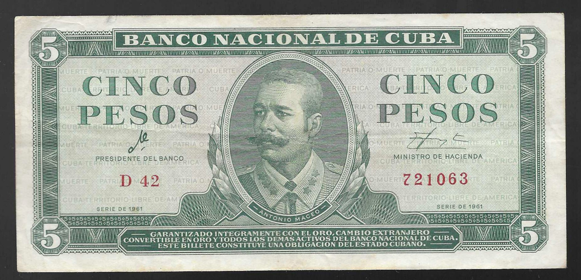Billete de 5 pesos de 1961