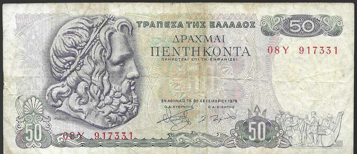 Billete de 50 Dracmas griegos de 1978