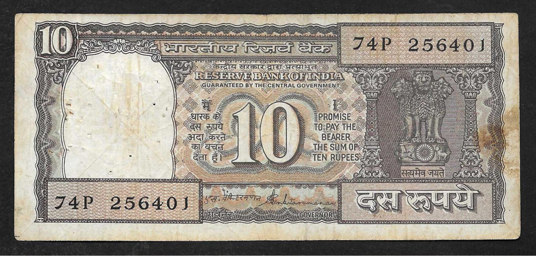 Billete de 10 rupias de La India serie "Dhow" (1990-92)