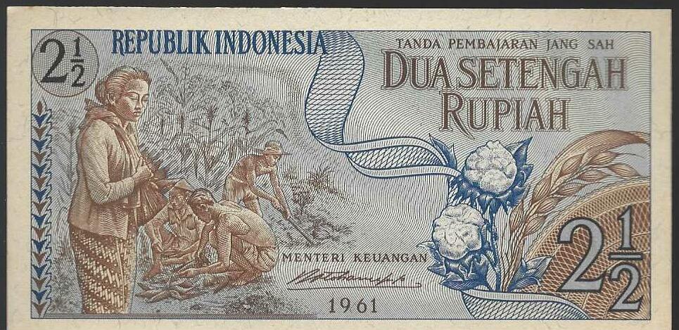 Billete de 2 y 1/2 rupias de 1961 (EBC)