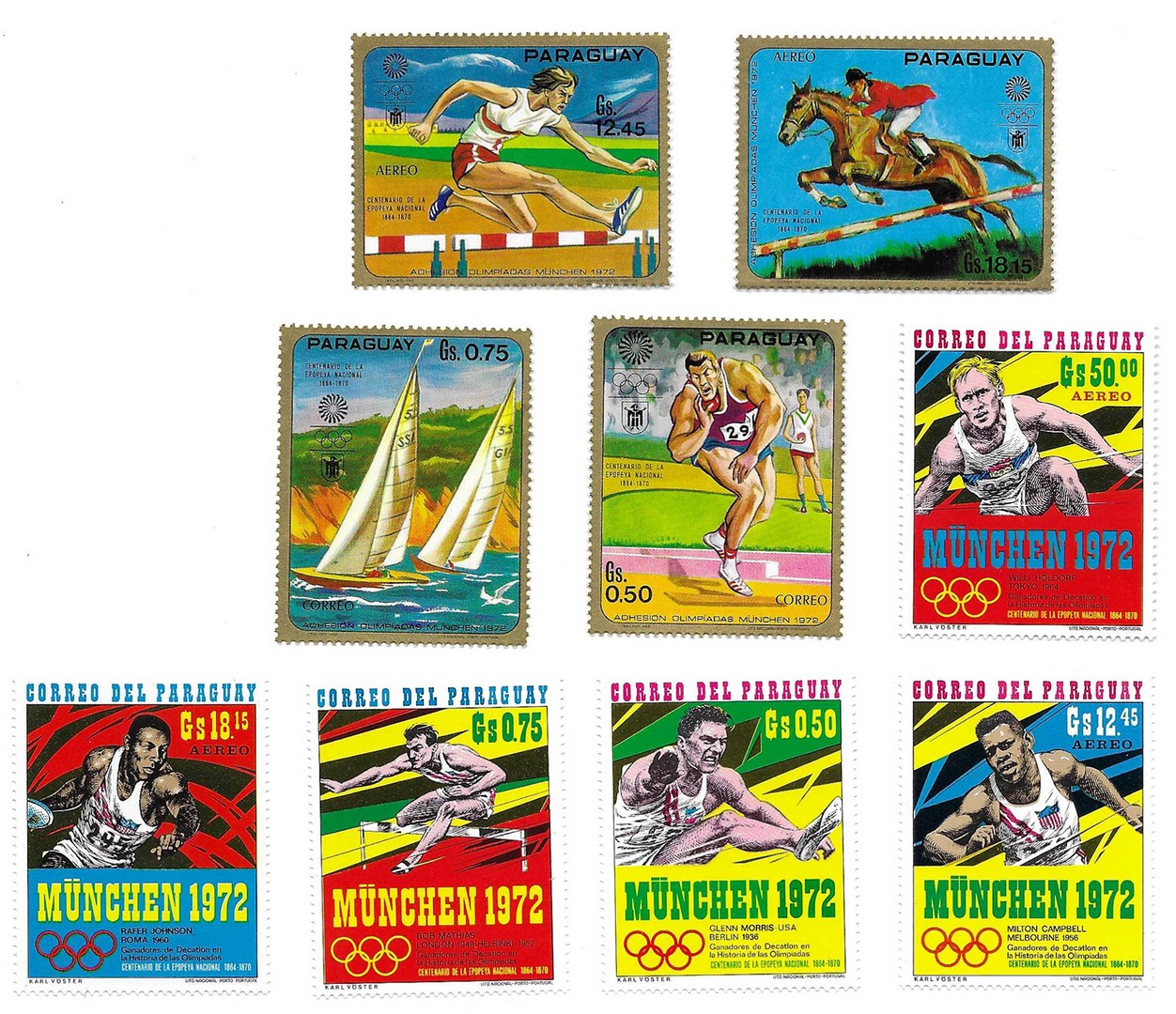 Lote de sellos nuevos (MNH) de 1972 "Juegos Olimpicos Munich 1972"