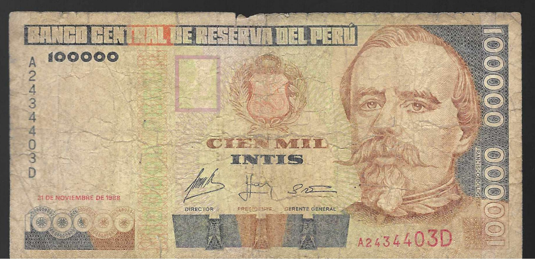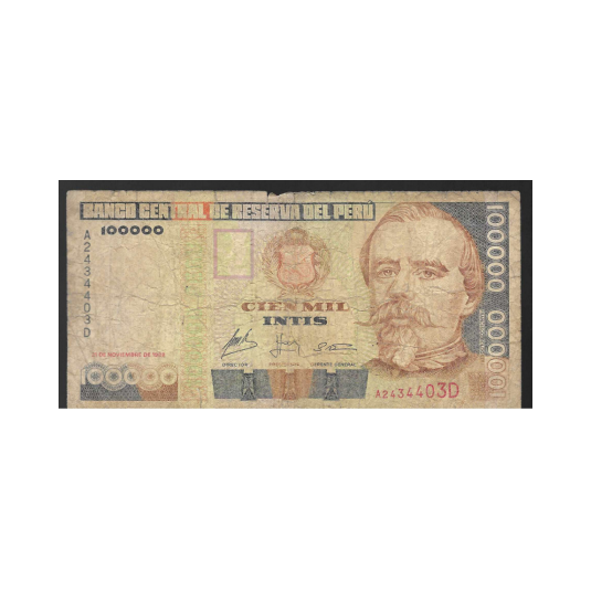 Billete de 100.000 intis de 1988