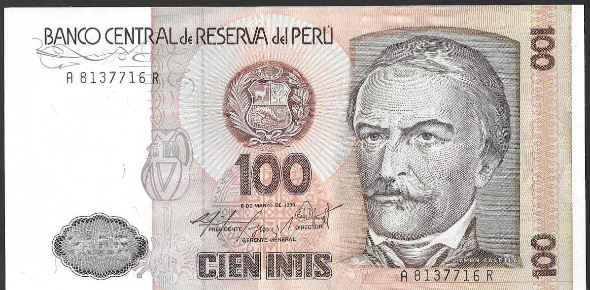 Billete de 100 intis de 1986 (sin circular)