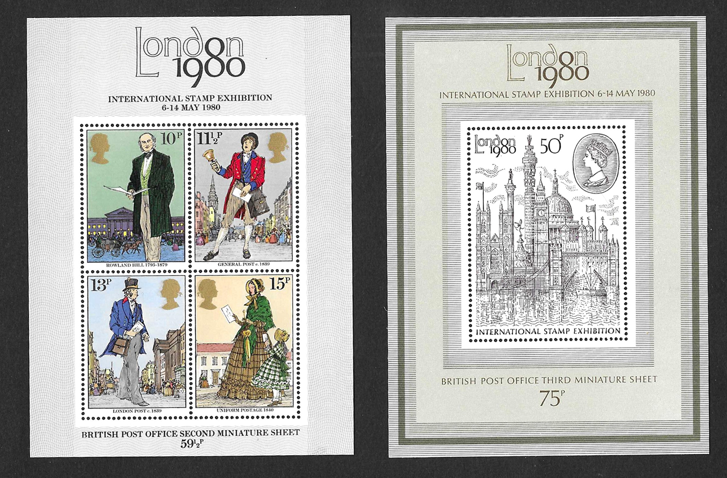 2 hojitas Exposición Filatelica Internacional en Londres 1980