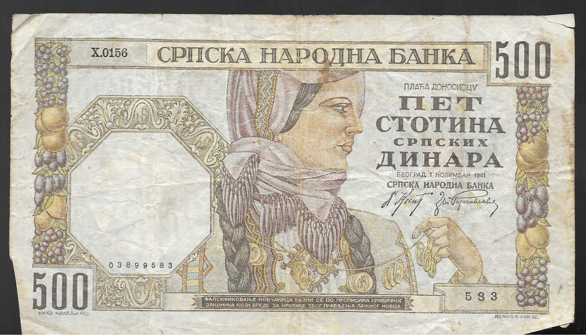Billete de 500 dinara de 1941