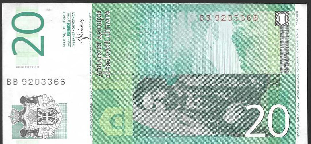 Billete de 20 dinares serbios de 2013 (sin circular)