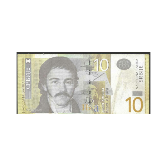 Billete de 10 dinares serbios de 2013