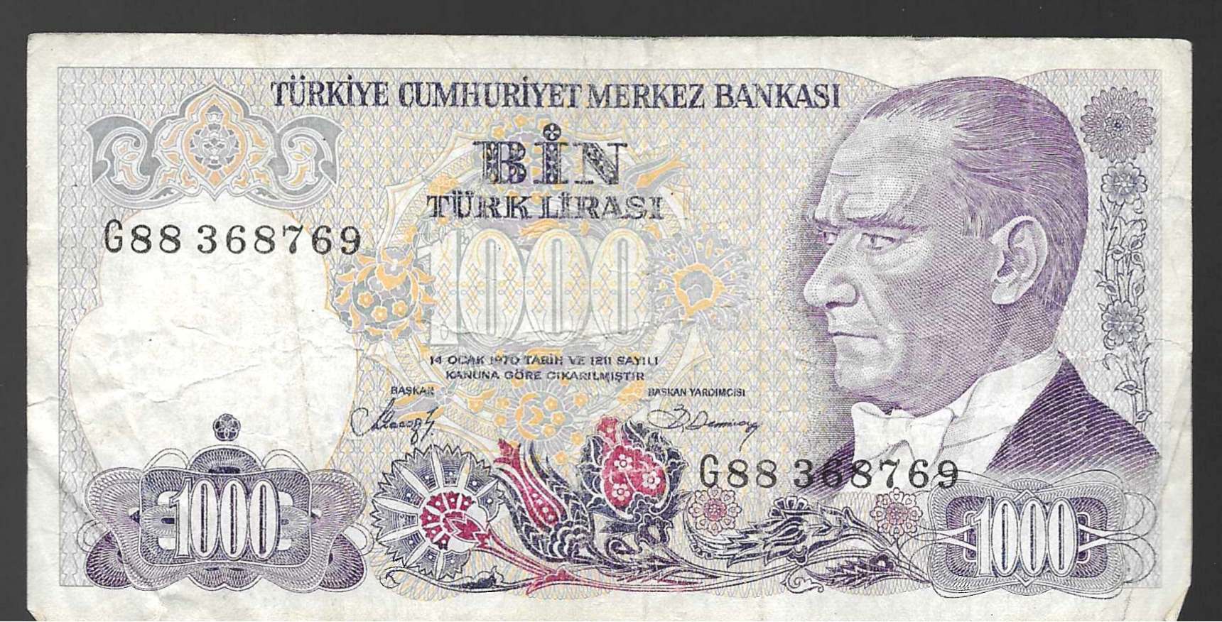 Billete de 1000 liras turcas (1970)