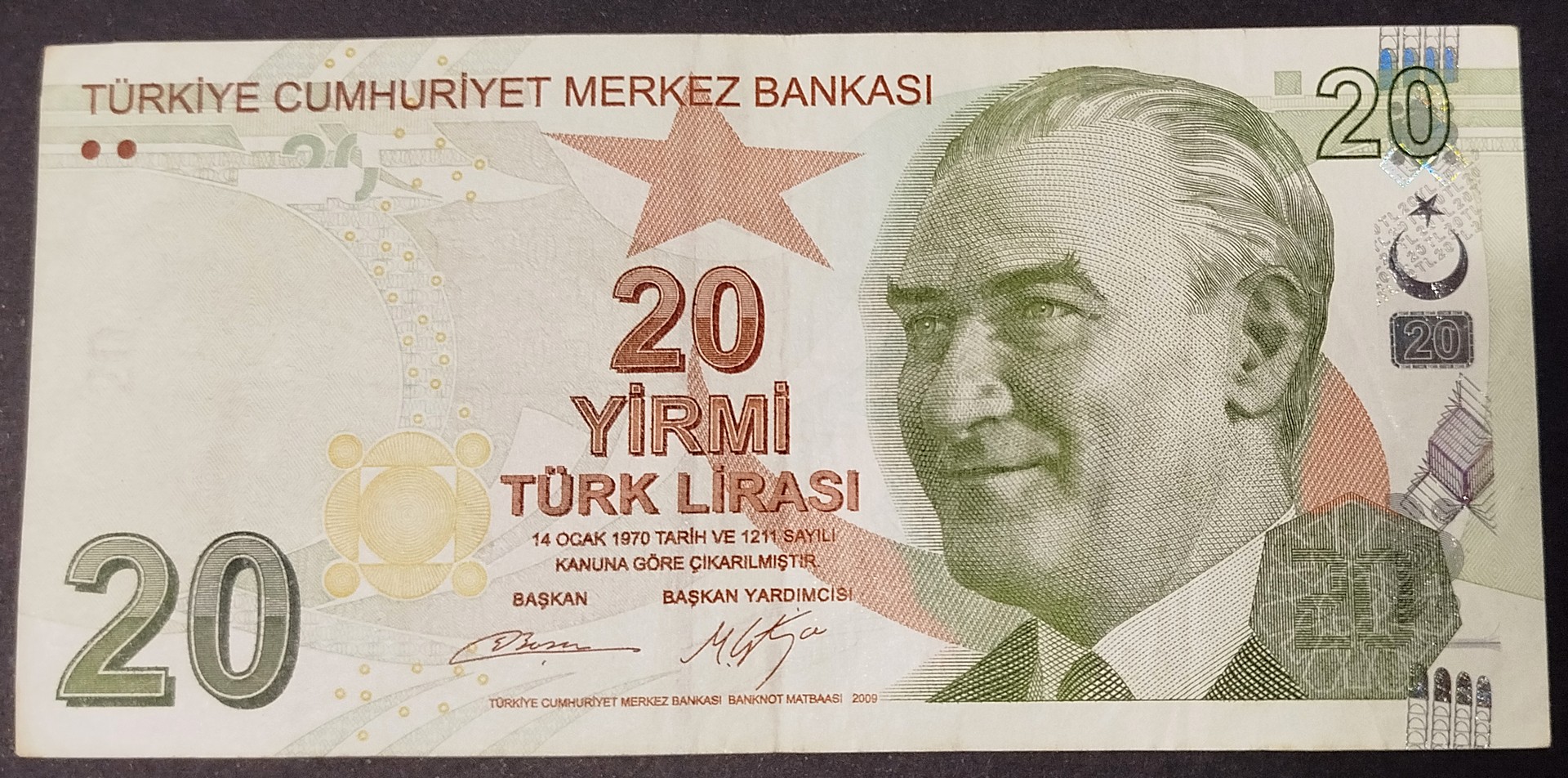 Billete de 20 liras turcas (2009)